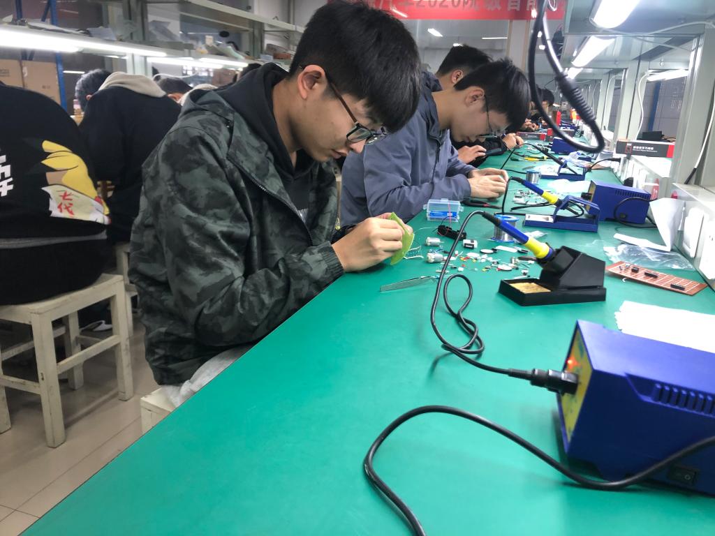 经过初赛选拔,共有29名选手最终进入到决赛。本次比赛主要考核学生对焊接、组装、调试智能小车的能力,考察学生对智能小车循迹和避障的工作原理的理解。三名老师根据选手现场表现,对选手的焊接情况和调试速度进行评分。