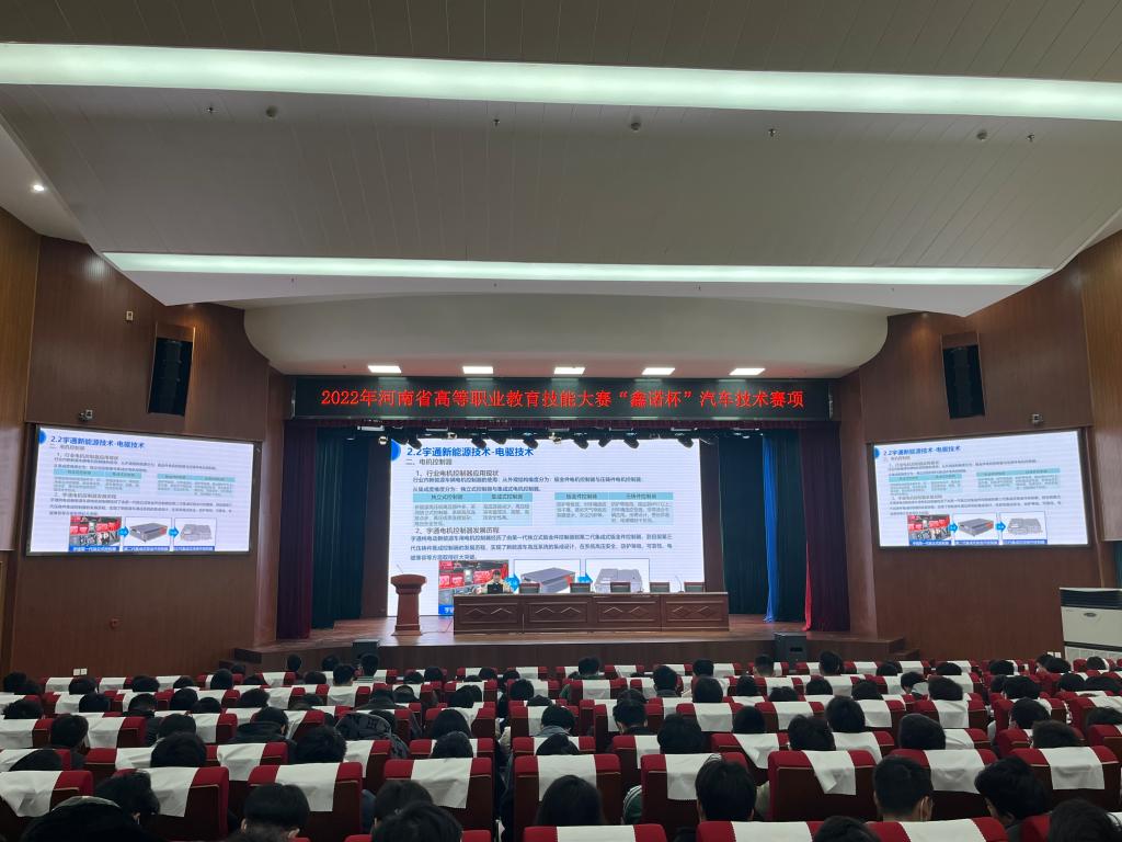3月25日下午,由888电子游戏平台手机版组织的2023年“制造强国”主题宣讲第二场活动在航海路校区艺术中心举行。郑州宇通集团技术专家魏玲、张荣荣应邀来我院做新能源与智能网联汽车知识专题讲座,我院200余名在校生聆听了讲座。
