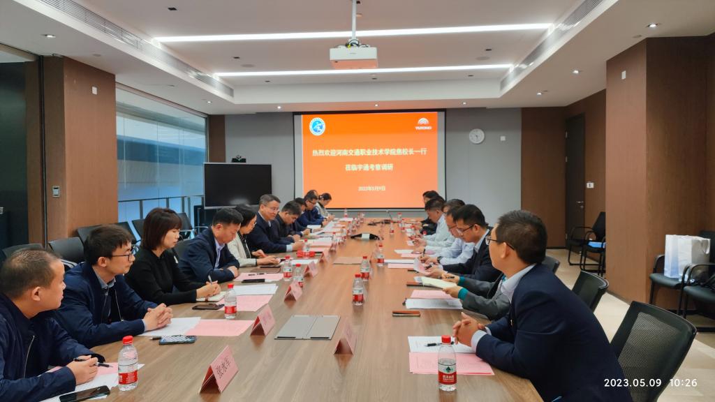 5月9日上午,校长焦宏涛带队深入郑州宇通集团有限公司考察调研。宇通集团用工和技能培训负责人李峰、教育公司总经理韩德利等陪同参观交流。