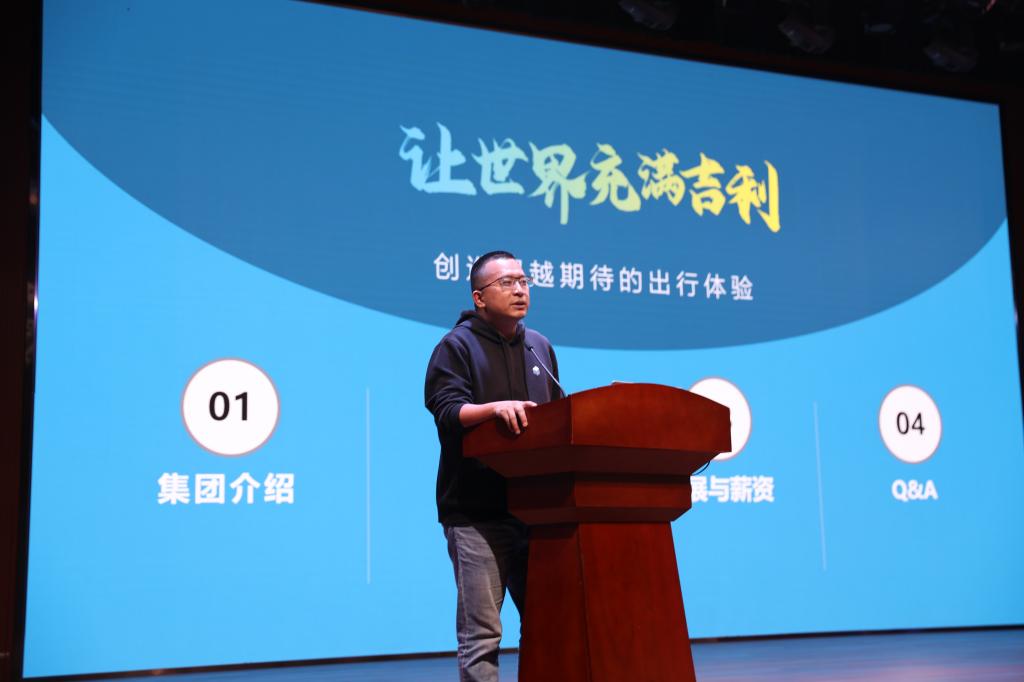 随后,吉利汽车在航海路校区艺术中心报告厅进行了“制造强国”宣讲活动,轩照振出席活动并致辞,共300余名学生参加了宣讲。包志伟从公司发展历程、技术研发、用人需求、薪资福利待遇等方面进行了详细介绍,并就同学们关心的问题,进行了现场解答。下午2点,吉利汽车在思齐楼A306教室举行了面试会,共有79人参加面试,学生们积极务实的择业态度和良好的职业素养得到了用人单位的认可。