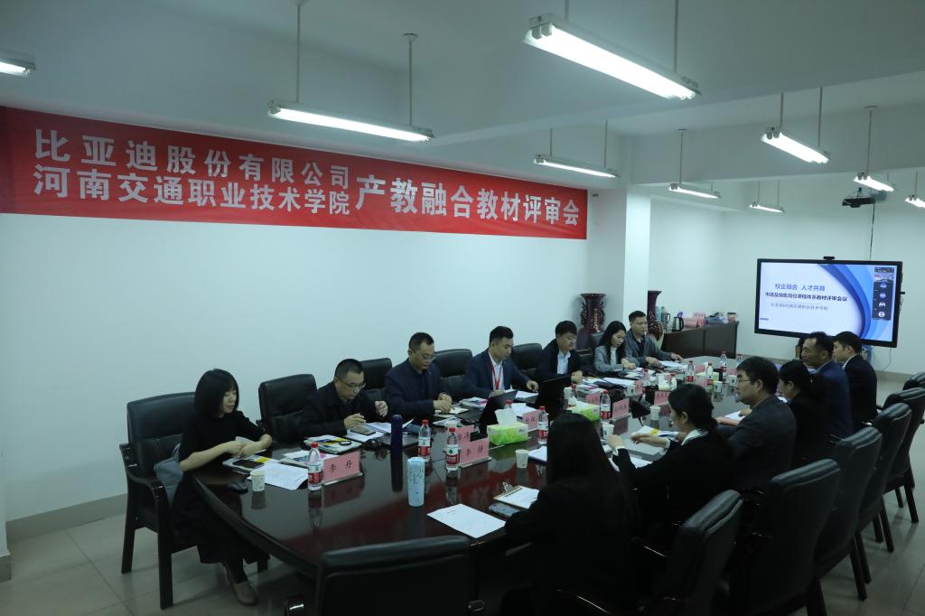 10月10日上午,888电子游戏平台手机版在航海路校区召开比亚迪校企合作共建教材评审会,比亚迪股份有限公司校企合作经理杨双喜,888电子游戏平台手机版党总支书记轩照振、副院长乔丽霞及相关技术专家、骨干教师参加评审会议。