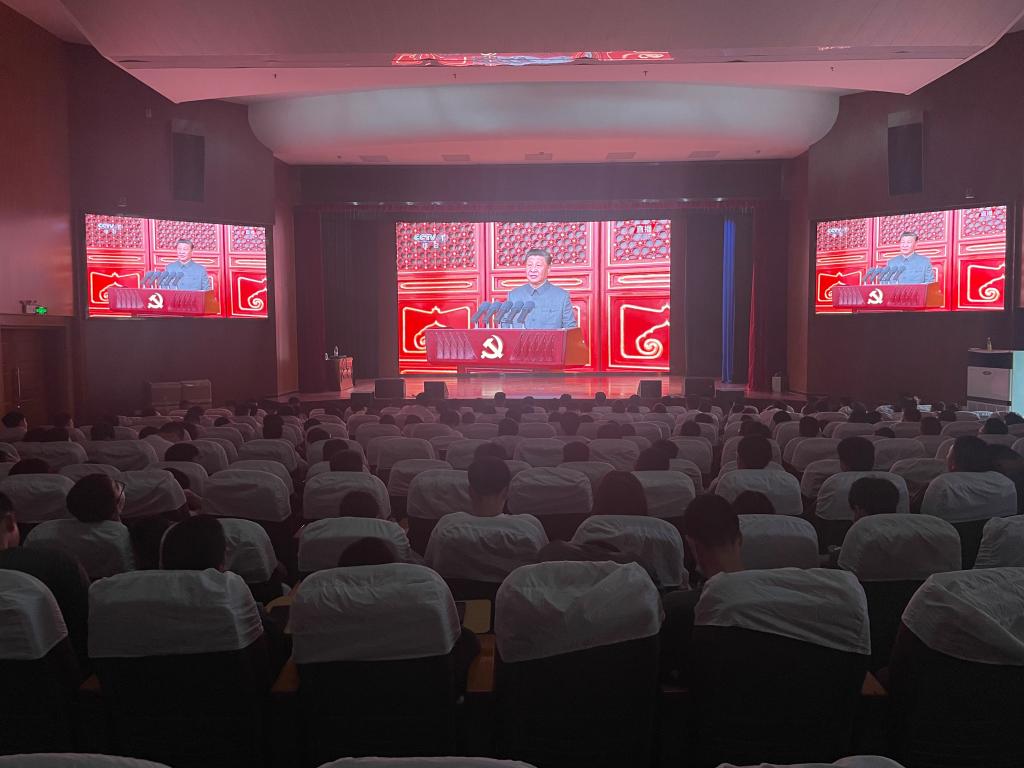 7月1日上午8时庆祝中国共产党成立100周年大会在北京天安门广场隆重举行。中共中央总书记、国家主席、中央军委主席习近平发表重要讲话。888电子游戏平台手机版组织教师党员、学生党员、积极分子在艺术中心报告厅观看庆祝中国共产党成立100周年大会。