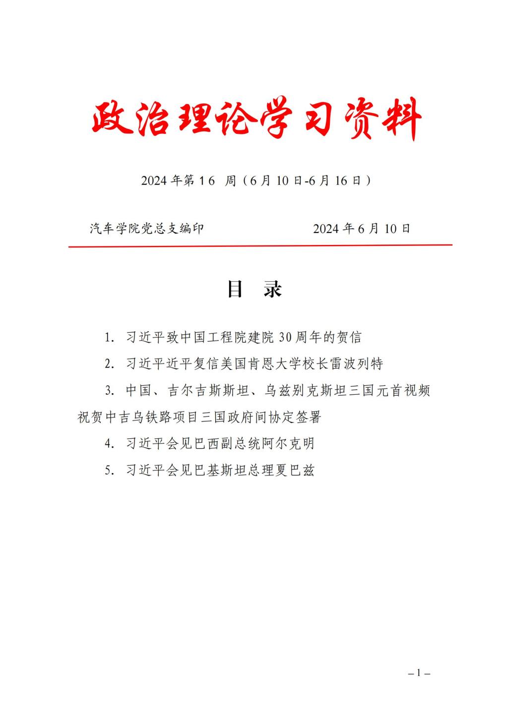 2024年春季学期第16周政治学习安排
