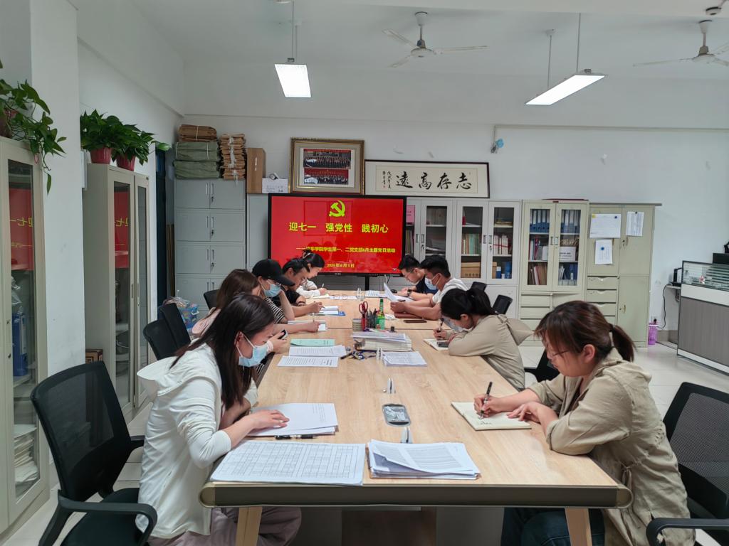 学思想,话廉洁。会议伊始,由宣传委员雷慧杰组织领学习近平总书记《在庆祝中国共产党成立一百周年讲话》、《习近平总书记在新时代推动中部地区崛起座谈会上的重要讲话》、《习近平总书记关于发展新质生产力的重要论述》。之后,由学生二支部书记贾颖慧组织党员同志们认真学习《中国共产党纪律处分条例》,全体党员围绕着“政治议题、组织议题”“廉洁纪律、群众纪律”开展专题集中学习研讨。理论学习会结束后,贾颖慧带领全体党员重温入党誓词,激励全体党员不忘初心、牢记使命。