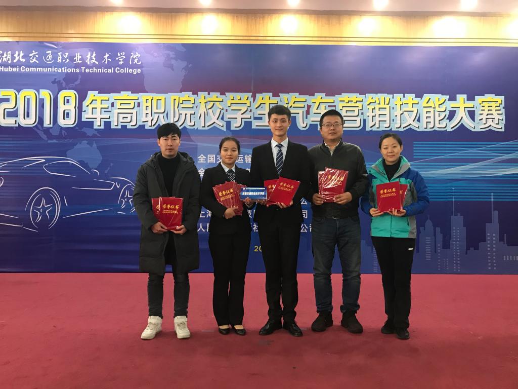 11月23日-25日,由全国交通运输职业教育教学指导委员会主办的全国高职院校学生汽车营销技能大赛在湖北交通职业技术学院举办,来自全国45所高职院校的90名选手参加了本次比赛。888电子游戏平台手机版教师黄樱、刘杰、冷俊辉与汽车营销与服务专业2017级学生吕军威、郑鑫玉组成的学院代表队参加了本次比赛。
