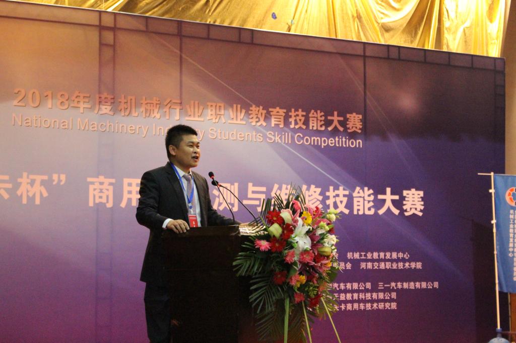 机械工业教育发展中心主任助理王志强、机械行指委竞赛与资源转化委员会副主任戴育红、机械行指委竞赛处马骁博士、河南交通职业技术学院副院长解福泉、深圳市爱夫卡科技股份有限公司董事长姚勇、大赛总裁判长刘庆华、陕汽集团商用车有限公司客户服务部副部长王翠等嘉宾出席了大赛的开幕式和闭幕式。