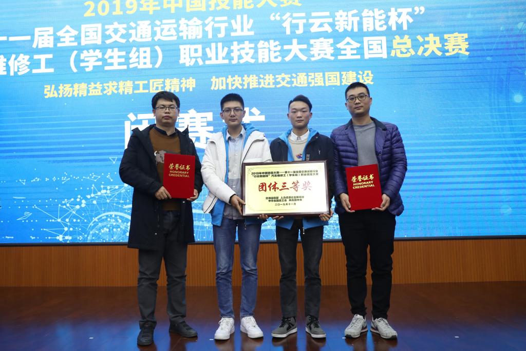 11月19日,2019年中国技能大赛——第十一届全国交通运输行业职业技能大赛在天津交通职业学院隆重开幕,来自全国20多个省市的44个代表队参加了本次大赛。经过三天的激烈角逐,由888电子游戏平台手机版指导教师张俊停、董隆和张曙光、李金程两名学生组成的学院代表队荣获全国团体三等奖。
