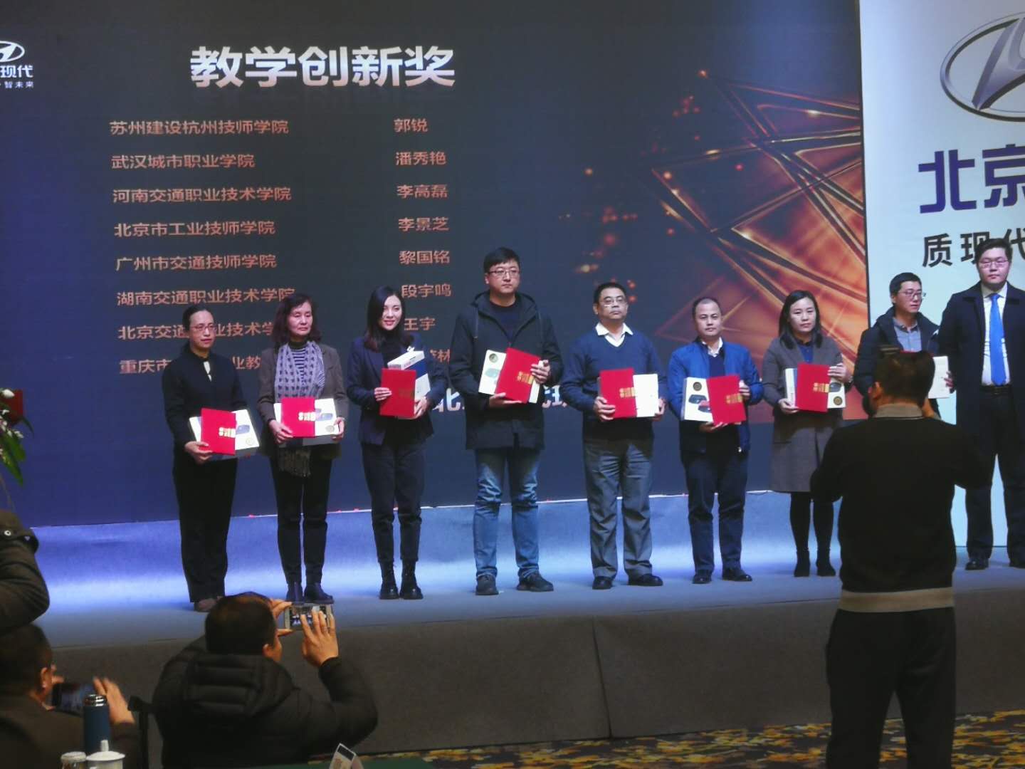 大会上,北京现代汽车有限公司对2018年“北京现代班”各项工作进行了总结,并对优秀合作院校进行了表彰。在“北京现代班”项目年终评比中,解福泉荣获北京现代校企合作项目“品牌传播奖”,邰茜荣获北京现代校企合作项目“教学推进奖”,李高磊荣获北京现代校企合作项目“教学创新奖”。同时,我院凭借完善的管理模式、扎实的办学作风、专业的教学团队和优异的考核成绩荣获北京现代校企合作项目“年度优秀合作院校奖”,并获赠北京现代第九代索纳塔教学用车一辆。