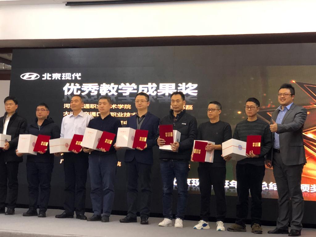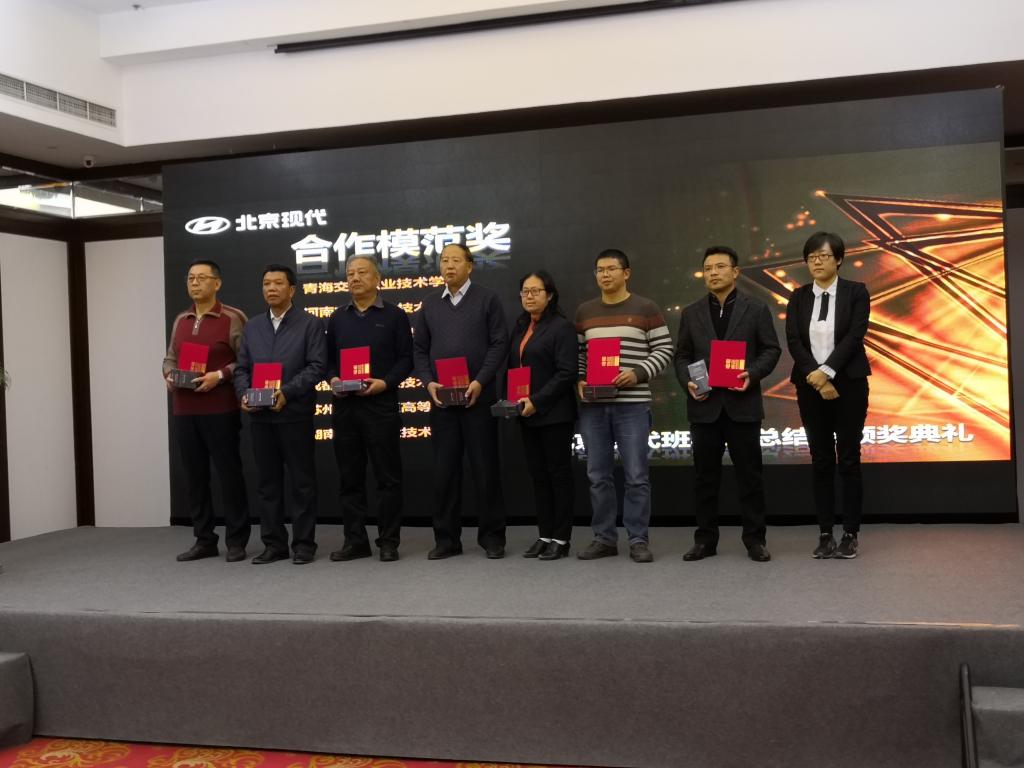 大会上,北京现代汽车有限公司对2019年“北京现代班”各项工作进行了总结,并对优秀合作院校进行了表彰。在“北京现代班”项目年终评比中,我院荣获“北京现代班”项目合作模范奖,李高磊荣获北京现代校企合作项目“优秀教学成果奖”。同时,我院凭借完善的管理模式、扎实的办学作风、持续扩展的社会培训影响力、专业的教学团队和优异的考核成绩荣获北京现代校企合作项目“年度优秀院校奖”,并获赠北京现代教学用车一辆。