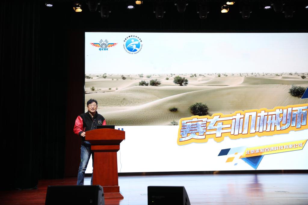 随后与会嘉宾也为大家带来了他们的精彩分享。环塔国际拉力赛冠军、求知百创车队签约赛手谢晓玲女士为大家分享了《环塔精神与我的故事》,通过聆听她的故事,使大家了解到在冠军的光环背后,不仅仅是朴实的热爱和执着的坚持,还有着鲜为人知的眼泪。中国汽车摩托车运动联合会特聘裁判、特聘数据专家耿嘉珂则通过《数据通讯在赛事中的应用》,让我们了解到数据通信在赛事中的应用。通过聆听专家的演讲,在座师生对于赛车行业有了进一步的了解,对于赛车机械师也有了更深层次的认识,对我们新开设的赛车机械师精英班有了更多的向往和期待。
