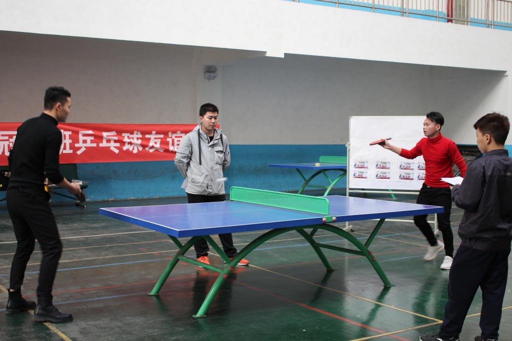 11月27日下午,888电子游戏平台手机版捷豹路虎冠名班在体育馆举办乒乓球友谊赛。