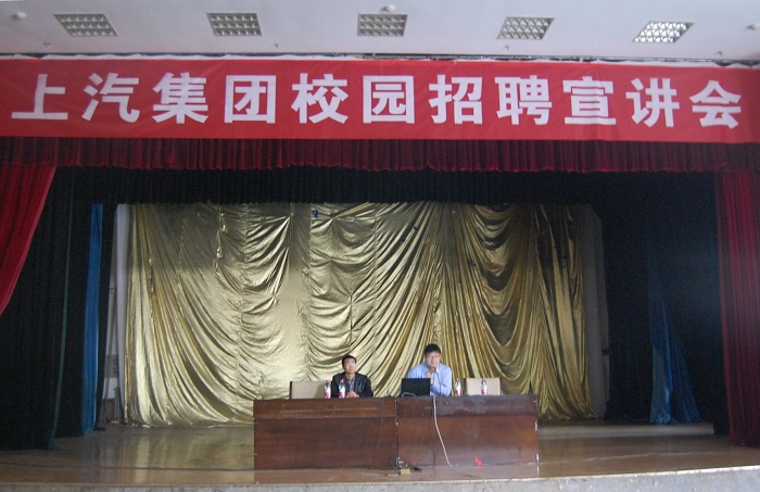 4月6日下午,上汽集团乘用车分公司人力资源部经理王帅一行来到888电子游戏平台手机版,在艺术中心报告厅为2014、2015级学生举行了专场招聘宣讲会。