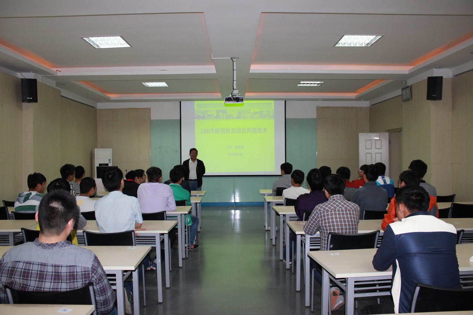 4月15日下午,888电子游戏平台手机版城市燃气教研室主任赵伟章老师在航海路校区沃尔沃培训基地为我院师生做了题为“LNG冷能回收及综合利用技术”的讲座。