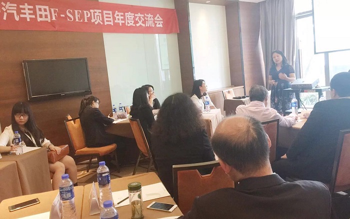 钟文室长认真听取全国9所交通学校的F-SEP项目负责老师发言,表达了对此项目的热情。其中F-SEP负责老师与项目共同走过了十年的时光,可以用“风雨十载,感怀真情”来形容。他们回顾了他们几年内的工作情况后,也介绍了其优秀毕业生的发展情况,许多的毕业生在毕业后进入一汽丰田体系经销店工作,表现突出,升职至销售部长及总经理,在管理层面也为一汽丰田销售体系做出了贡献。