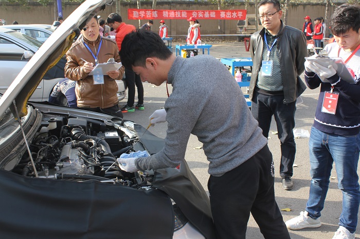 根据豫交院〔2016〕106号文件精神,11月1日至11月30日888电子游戏平台手机版在航海路校区组织开展了学生技能大赛暨“学风建设月”活动。此次大赛针对实际工作情景设计了“汽车5000公里常规保养及检测”、“士官生商用车维护”、“汽车营销技能”、“钣金喷漆工艺”、“汽车电子产品制作”和“工程机械模拟操作”等六项技能比赛。学生积极主动、斗志昂扬的参赛热情洋溢在每一张年轻的脸上。