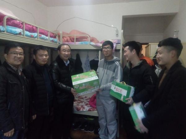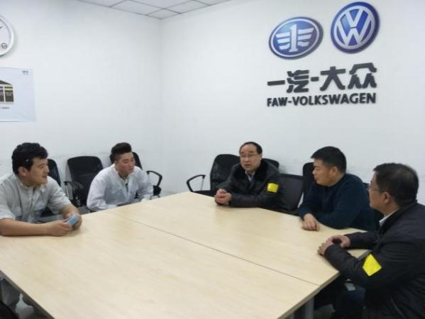 2017年1月17日,在新春佳节来临之际,学院副院长解福泉、888电子游戏平台手机版党总支书记刘向杰等一行代表学院赴成都看望慰问“一汽-大众”生产实习基地的实习学生。