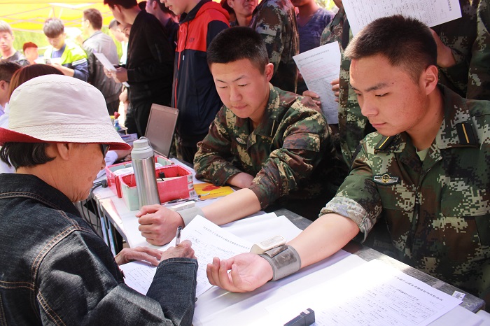 4月26日中午,一场以“热血传递大爱”为主题的无偿献血活动在航海校区西门广场进行,251名大学生和士官生以集体献血的方式,度过了难忘的一天。