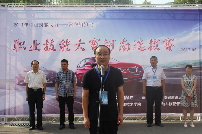 此次大赛由学院副院长解福泉担任竞赛裁判组总裁判长,888电子游戏平台手机版院长朱学军担任副总裁判长。23日上午9时,随着解福泉副院长宣布2017年中国技能大赛—汽车维修工职业技能大赛河南选拔赛开幕,此次大赛正式拉开帷幕。