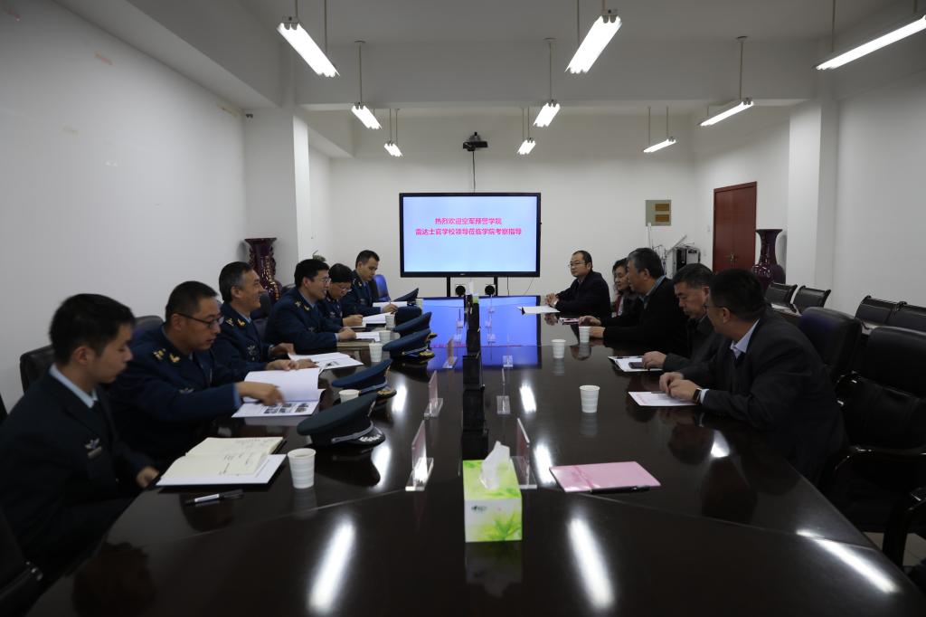 11月22日上午,空军预警学院雷达士官学校教学科研处副处长常春贺、车辆技术系主任陈海山一行6人到888电子游戏平台手机版考察交流。888电子游戏平台手机版院长朱学军、副院长邰茜、教务处副处长冷传广、学生工作处副处长沈宏杰、888电子游戏平台手机版相关科室负责人陪同参观并举行座谈会。