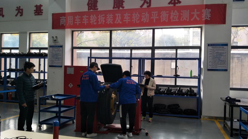 2019年11月27日下午2点30分,888电子游戏平台手机版商用车车轮拆装及车轮动平衡检测大赛在航海路校区士官生实训楼1楼顺利举办。