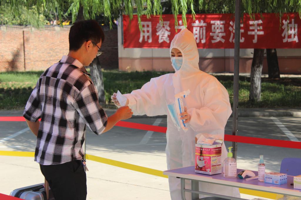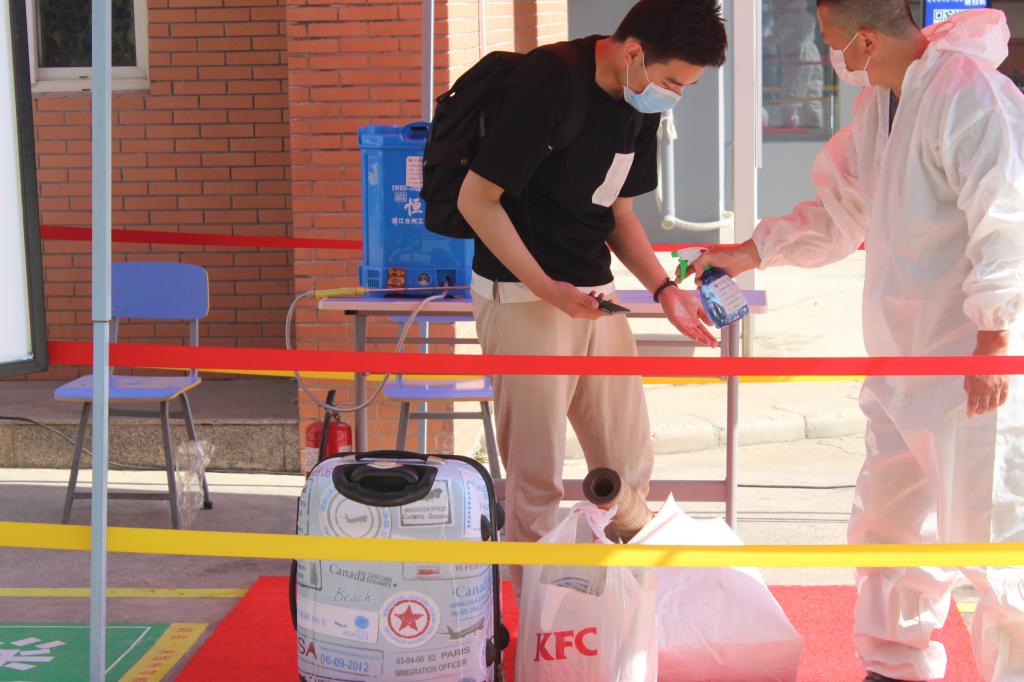 在西门返校报到点,报到现场秩序井然,所有工作人员和返校学生全部佩戴口罩,间隔1米以上。在工作人员的指引下,返校学生通过核验健康码、体温检测、消毒杀菌、进校更换口罩、提交返校健康承诺书等流程,完成报到后返回宿舍,整个流程有条不紊,井然有序。
