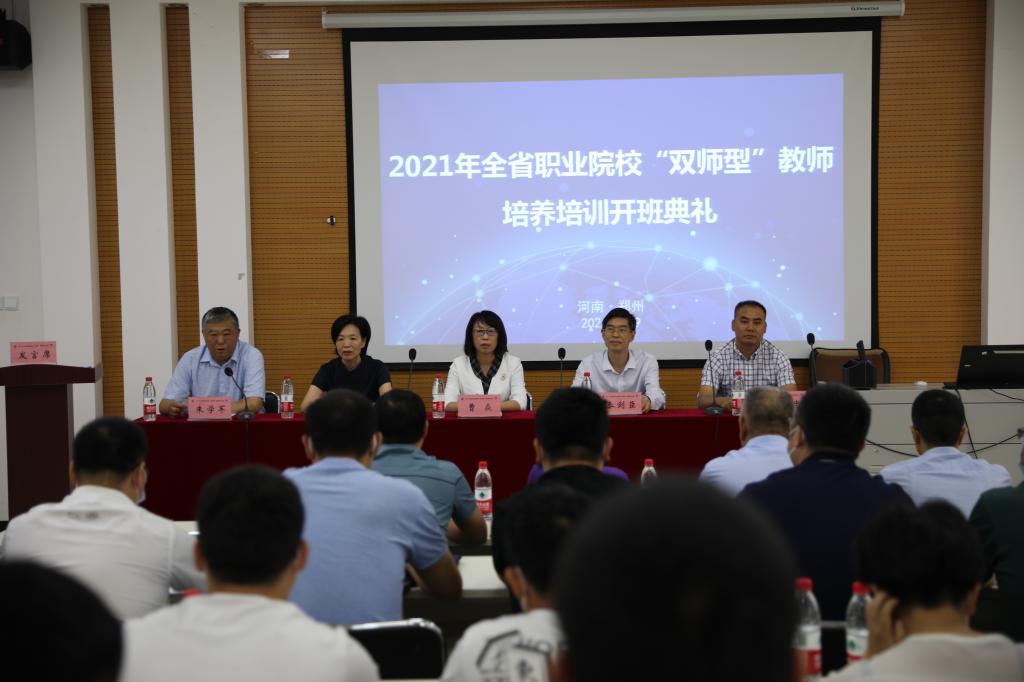 6月19日上午,由河南省教育厅主办,河南交通职业技术学院、郑州鑫诺商贸有限公司承办的河南省职业院校汽车检测与维修技术、新能源汽车技术专业2021年“双师型”教师培养培训班开班仪式在我校航海路校区举行。