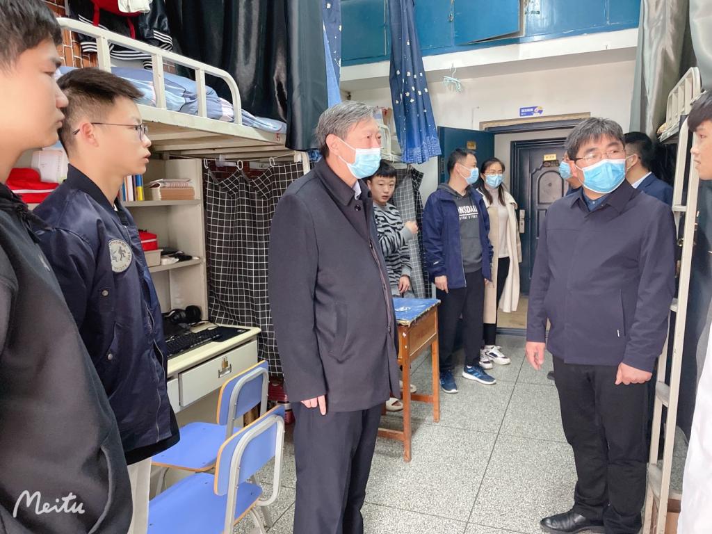 李松涛先后实地查看了校门消杀点、学生宿舍、学生餐厅等疫情防控重点区域,听取了相关负责人关于防疫措施落实情况的介绍,对航海路校区疫情防控的重点环节、处置流程和指挥协调等方面提出了具体意见。