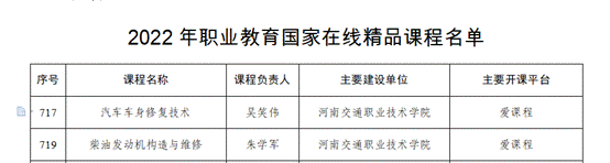1月12日,教育部公布了2022年职业教育国家在线精品课程名单,我院《柴油发动机构造与维修》《汽车维护与保养》2门课程成功入选,成为我院首批国家级精品课程。
