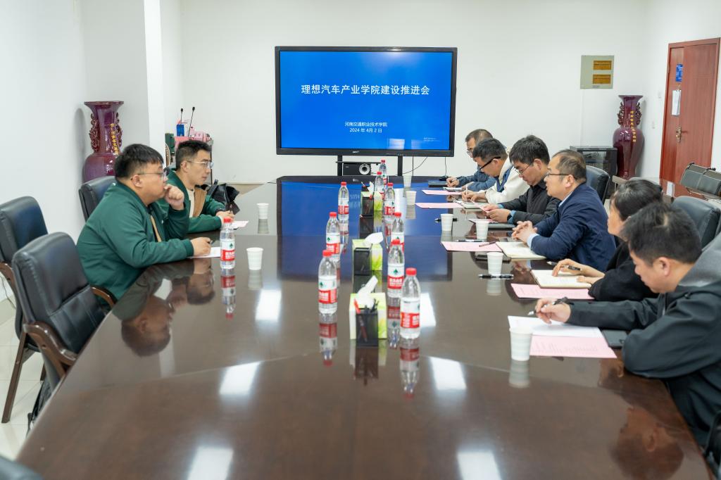 4月3日,888电子游戏平台手机版举行理想汽车产业学院建设推进会,理想汽车校企合作负责人杨建坤、施杨,888电子游戏平台手机版党总支书记轩照振及相关负责同志参加会议。888电子游戏平台手机版副院长杨长征主持会议。