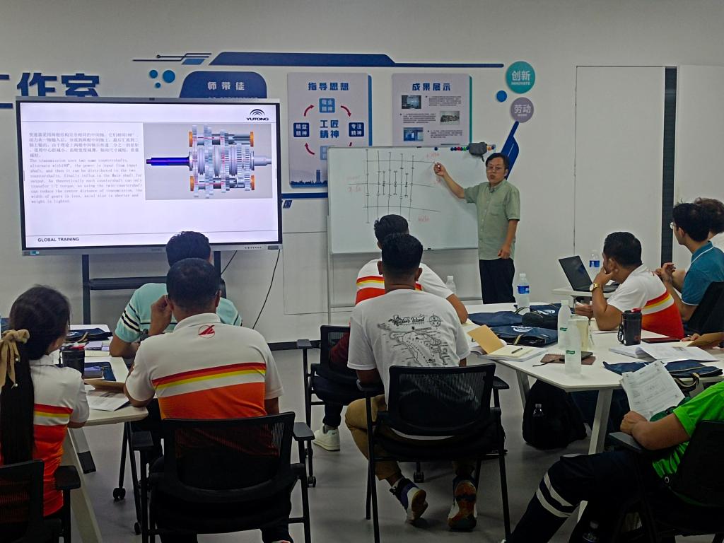 6月18日,888电子游戏平台手机版受宇通集团邀请,委派骨干教师戴建营前往宇通集团,为来海外学员讲授变速箱和车桥相关课程,并进行车辆结构方面的培训。
