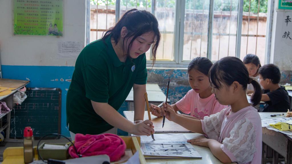 科学组织教学活动,开设“最是书香能致远”冰心儿童文学作品鉴赏和书信课和“我是小小书法家”书法教学课。书信不仅是一种沟通方式,更是传统文化的综合载体。实践团成员以冰心先生的《寄小读者》导入,聚焦中国传统书信和现代书信,教授学生正确书信格式,并组织孩子们为在外地务工的爸妈写一封信,以书信为载体锻炼提升学生书面表达能力与情感传达能力;书法是中华民族的文化瑰宝,是人类文明的宝贵财富,是基础教育的重要内容。实践团成员为孩子们准备了毛笔、墨汁、宣纸等,在课堂上边示范边讲解书法书写要领,从基础理论、基本技法、作品赏析等方面教大家学会正确运笔、控笔,针对“横竖点撇捺”等基本汉字笔画进行书写指导,手把手带着孩子们练习书法,并组织开展规范汉字书写比赛,评选优秀作品,激发学生书写热情,感受汉字魅力,帮助孩子们练好基本功,写好规范字。