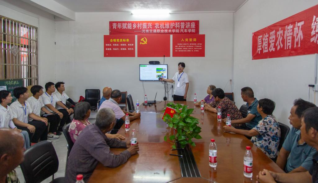 推普实践团在秦围孜村党群服务中心开设农业政策和技能培训班,针对农机具购置补贴、农村土地承包经营权流转、实际种粮农民一次性补贴政策等村民们关心的热点问题,用朴实的语言把“文件语”变成“百姓话”,拉近与村民之间的距离,把党和国家的惠农好政策讲清楚、讲明白,让村民听得懂、能领会、可落实。同时,还向村民发放了农机维护保养宣传手册、宣传资料300余份,教授老龄农户下载和使用“河南农机云平台”APP,帮助他们学会注册、发布任务等,让他们学会如何在农忙时节及时联系和调配最近距离的收割机;针对困扰红薯种植大户的“产品好,销量难”的问题,实践团通过开展电商直播讲座,在对农户们进行讲好普通话、认识常用字教学的基础上,重点进行自媒体直播软件及设备使用等的相关培训,辅导农户使用普通话进行电商直播,提高直播过程中普通话运用能力,使农户更好地对红薯产品进行介绍、宣传与推广,从而推动红薯产品销售,拓宽致富道路。