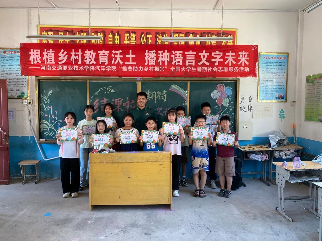 为积极响应党的二十大关于“加大国家通用语言文字推广力度”的决策部署,贯彻落实习近平总书记关于教育的重要论述和关于语言文字的重要指示批示精神,切实增强新时代大学生社会实践能力,为推广国家通用语言文字贡献青春力量,助力乡村振兴。7月中旬以来,888电子游戏平台手机版“交息相连,声生不息”实践团赴信阳市息县东岳镇,开展了为期两周的“推普助力乡村振兴”社会实践志愿服务活动。