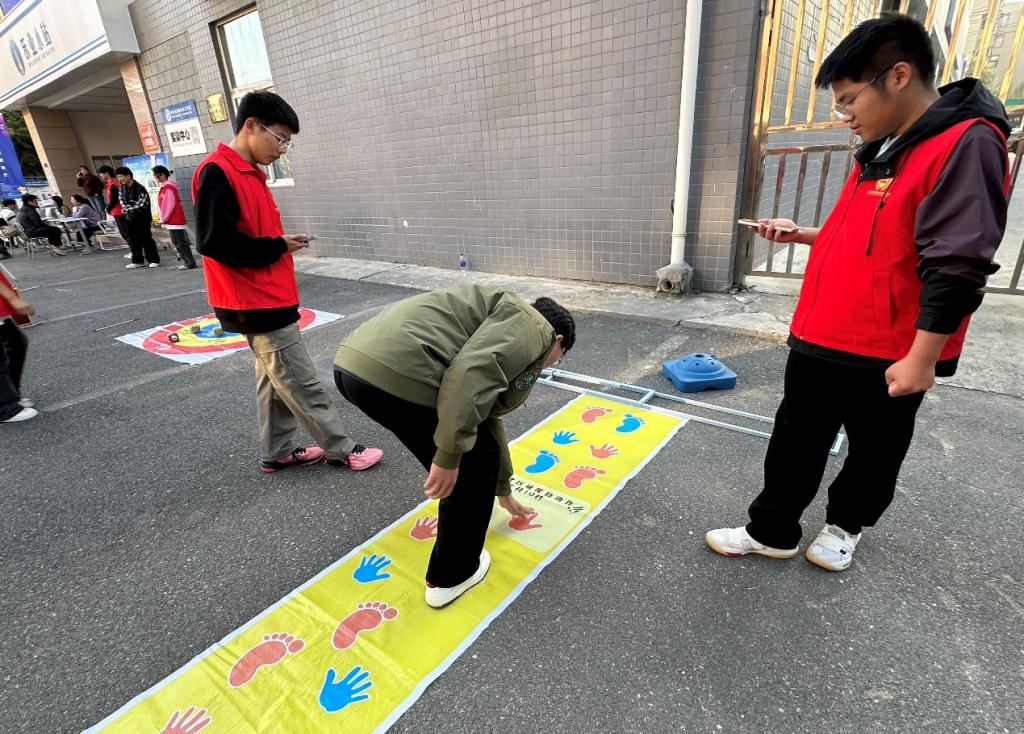 在心理小游戏环节,开展了投沙包、投壶、手脚并用等多项游戏,吸引了众多同学参与。趣味盎然的游戏使得同学们沉浸在轻松愉悦的氛围里,他们相互配合,团队协作,不仅收获了快乐,还在不知不觉中得到了心理上的锻炼和成长。