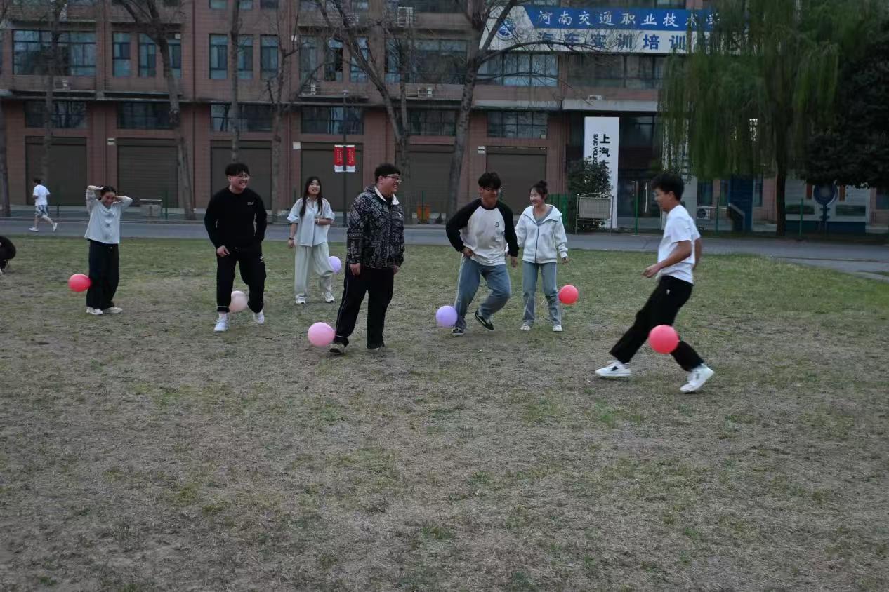活动包括“气球大战”“不倒森林”和“夹球跑接力”三个环节。在“气球大战”中,同学们通过团队配合完成挑战;“不倒森林”中,同学们围成圆圈,手持竹竿,默契配合,竹竿在快速传递中始终屹立不倒;“夹球跑接力”将活动气氛推向高潮。