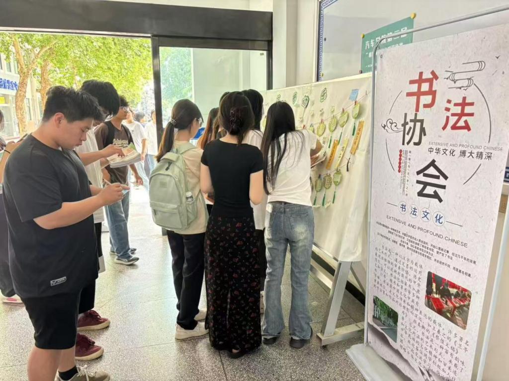 为弘扬中华优秀传统文化,深化学生对传统节日的认知,5月30日,书法社在教学楼一楼大厅举办端午主题书法活动。活动以“墨香端午,笔韵传情”为主题,吸引百余名师生参与。