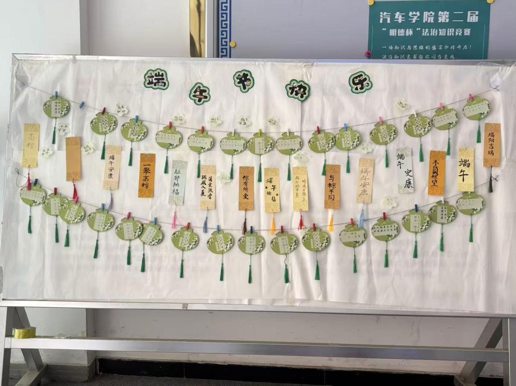 活动现场设置创作体验与作品展示两大环节。在专业教师指导下,学生执笔书写“端午安康”“粽叶飘香”等节日祝词,并创作出端午主题诗句。行楷隶篆各展风骨,墨迹中传递出对传统文化的深切理解。展示区悬挂的书法作品,引得师生驻足品评,创作者现场解说运笔技法与文化内涵,形成浓厚的艺术交流氛围。