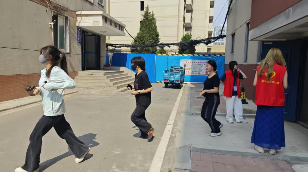演练以消防警报鸣响为启动指令。参演师生迅速采取防护措施:用湿毛巾掩住口鼻,沿疏散指示灯指引,经预设安全通道有序撤离至户外集结点。疏散全程紧张有序,各楼层引导员、安全岗人员配合默契,达到预期效果。演练结束后,学院安全负责人对活动进行总结,重点讲解了火场逃生要点和灭火器使用方法。