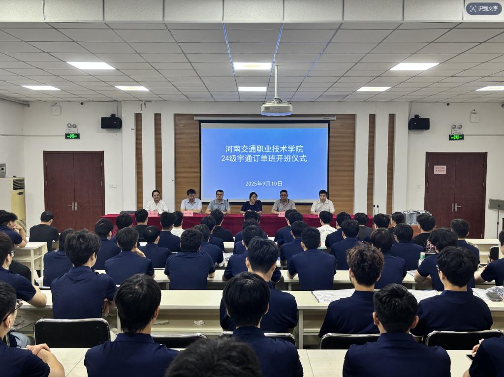 9月10日上午,888电子游戏平台手机版与郑州宇通集团有限公司在航海路校区联合举行2024级宇通现场工程师班开班仪式。校企双方相关负责人出席仪式,宇通项目教师团队与65名宇通现场工程师班学生共同参加。
