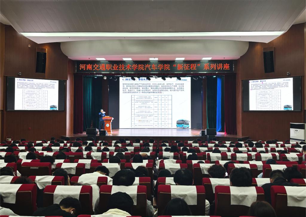 本次讲座特邀郑州宇通集团有限公司高级技师杨卫锋担任首讲嘉宾。讲座中,杨卫锋以《从“职校生”到“大工匠”——科技发明助力新能源汽车产业技术创新》为题,结合自身成长经历,分享自己通过技术突破与职业发展从普通职校生成长为“中原领军人才”、河南省技术能手及省级技能大师工作室领办人的心路历程,激励学生脚踏实地、勇于创新。互动环节,同学们围绕学业规划、技术方向及技能提升等话题踊跃提问,与专家深入交流,现场气氛热烈。榜样引领方向,奋斗成就未来。