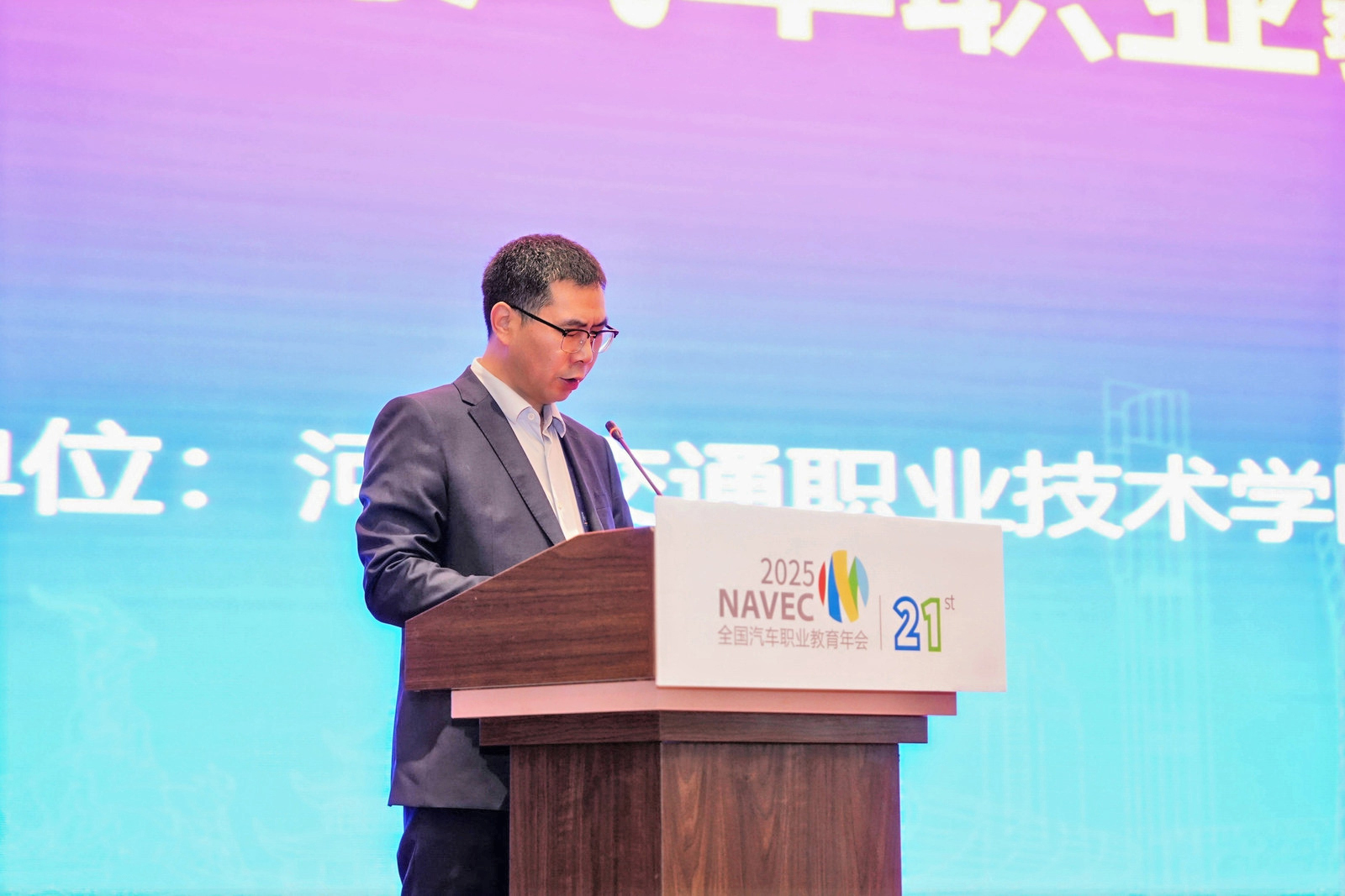徐红玉在分论坛致辞中介绍了学校70余年办学积淀与国家“双高计划”建设成效,重点交流了学校在汽车职教垂类大模型研发、AI教学资源库构建、数字孪生实训中心筹建等方面的探索实践。他表示,人工智能正深刻重塑汽车产业技术体系与人才需求,成为推动职业教育高质量发展的关键力量,期待通过本次论坛凝聚智慧,共同探索AI赋能汽车职业教育的新路径,并发出共筑产教融合生态圈、共推课堂革命、共建协同发展共同体三点倡议,为AI赋能汽车职教发展凝聚共识。
