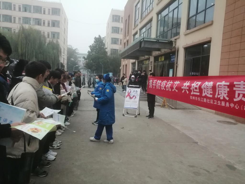 11月30日,时值第33个“世界艾滋病日”来临之际,航海路校区联合郑州市长江路社区卫生服务中心在学生餐厅门口开展了主题为“携手防疫抗艾 共担健康责任”的世界艾滋病日宣传教育活动。