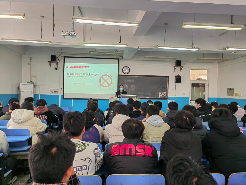 会上,王莹讲解了吸烟存在的安全隐患以及对身体健康的危害,并重点强调了禁止在宿舍和教学楼等公共场合吸烟,使学生深刻认识到了吸烟的严重后果,增强了同学们的禁烟意识和社会责任意识。同时,通过真实、典型案例介绍了吸烟的危害,让学生直观地了解吸烟带来的负面影响,提醒同学们从现在起拒绝吸第一支烟、拒绝吸二手烟。最后,还倡导同学们养成科学健康的生活方式和习惯,为共同维护、打造、建设无烟校园贡献自己的一份力量。