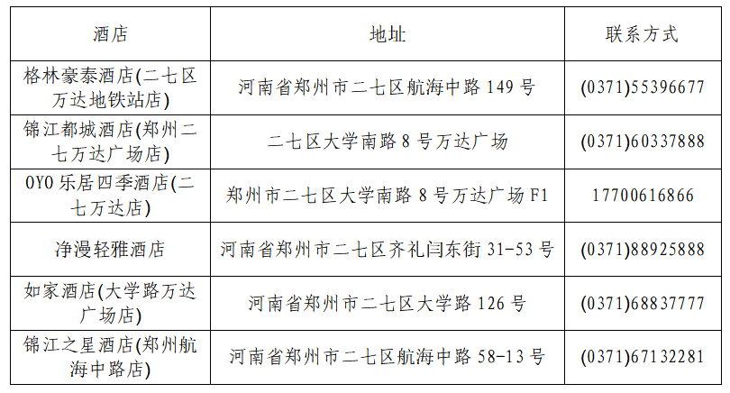 此次大赛不安排统一住宿,各参赛队自行选择住宿酒店,费用自理。报到地点附近酒店联系方式如下表: